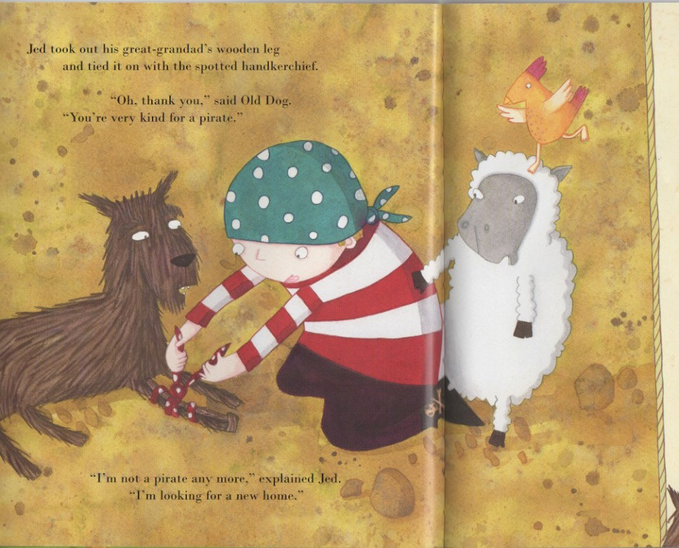 Jed the pirate is no longer a pirate and is looking for a new home. In this story written by Ronda Armitage, he comes across a series of animals who all need his help and he uses his pirate ways to help them.
