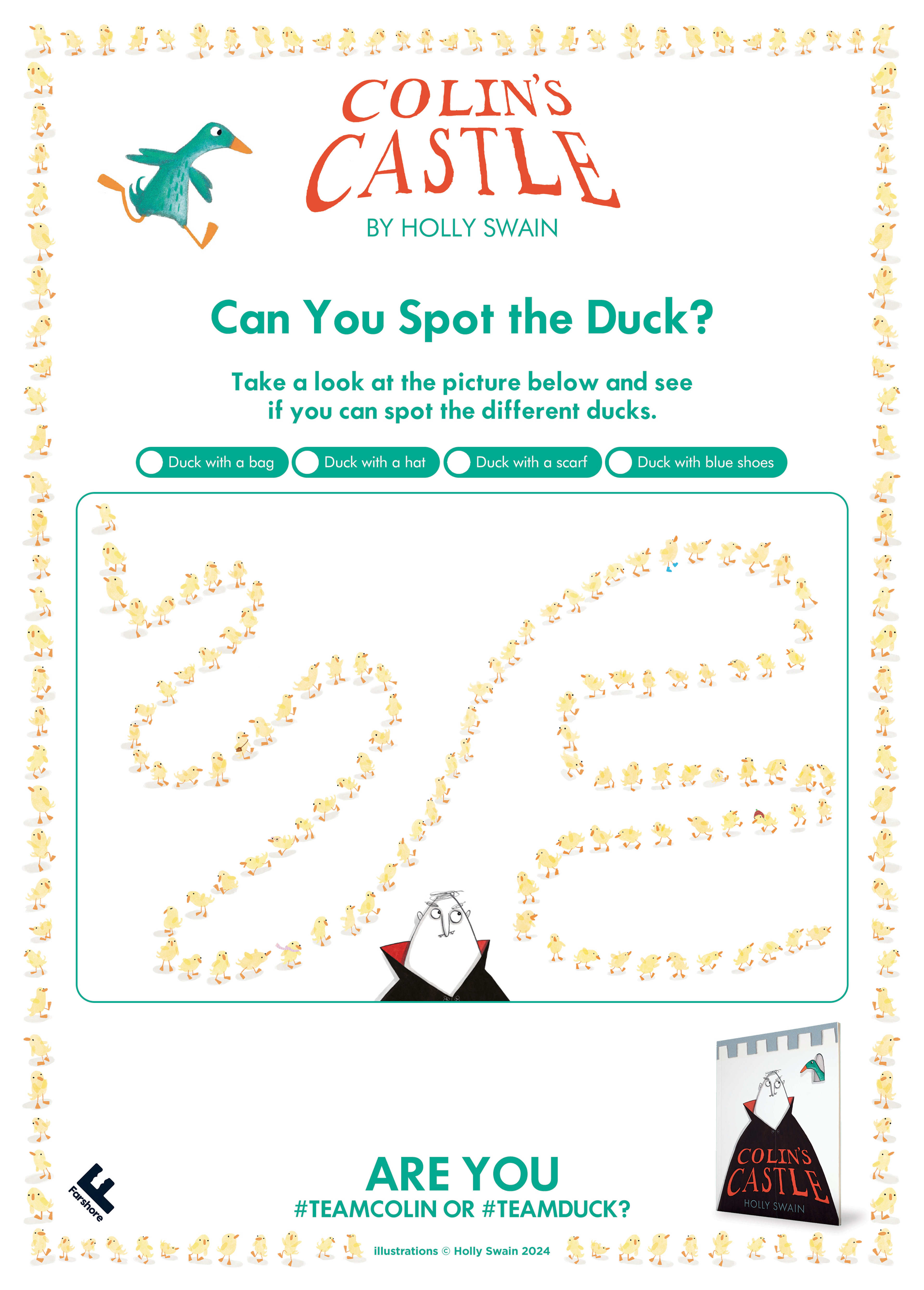 I've produced three activity sheets for the first Colin's Castle book - a spot the difference, a Colin's Castle maze and Duck spotting!