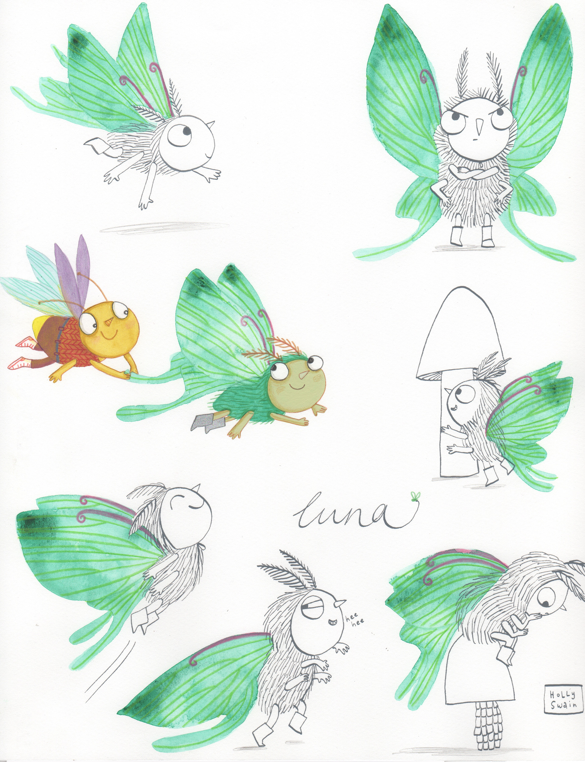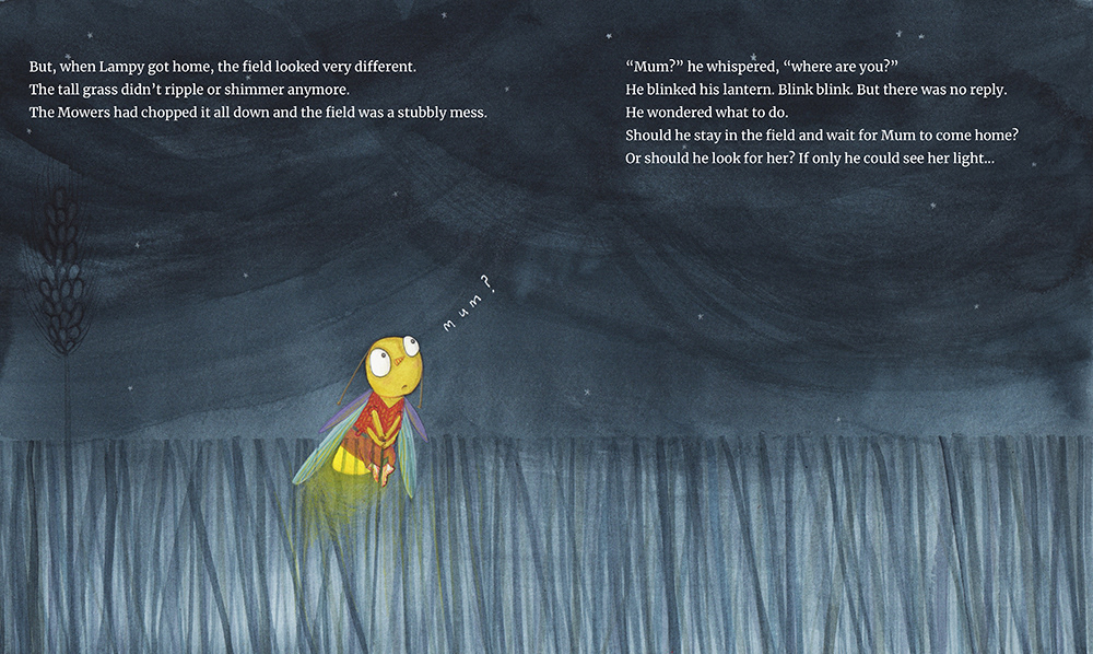 This work was created during a Make Art That Sells course. The text is written by Zoe Tucker and is about a firefly called Lampy and a moth called Luna.