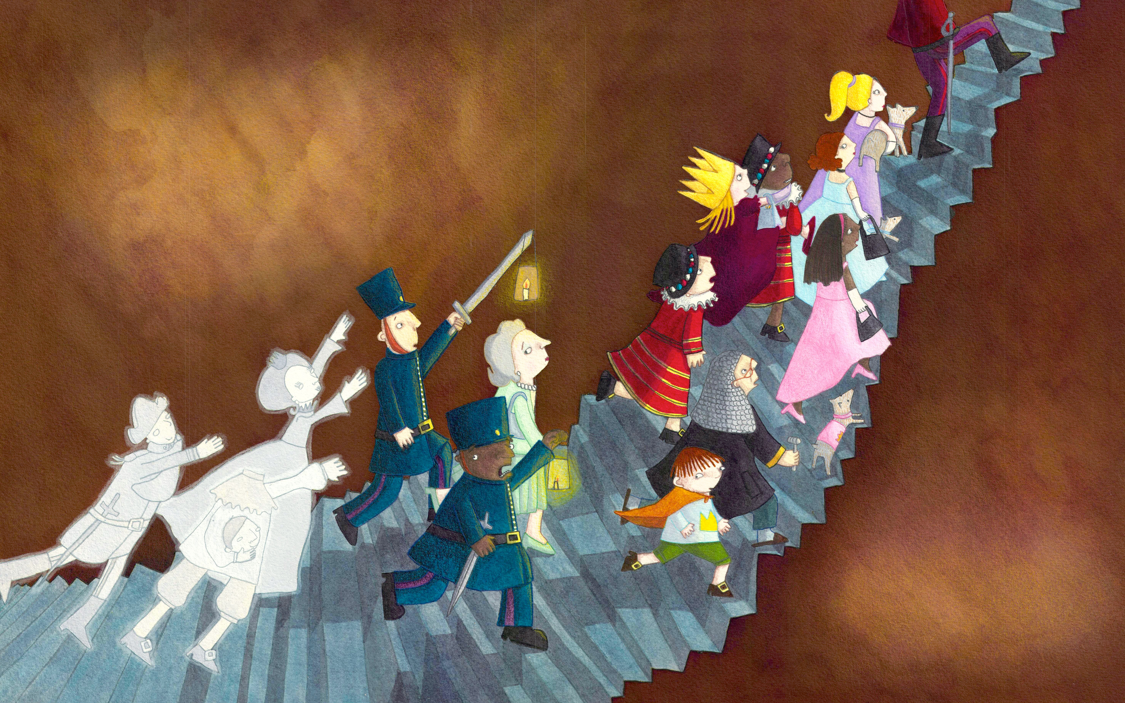 Starring Sergeant Rock Hard, of her Majesty's Guard, along with the Queen, prime minister, beefeaters and ladies in waiting, they explore a castle. Unbeknown to them, a cast of ghosties are watching their every move..written by Cressida Cowell.